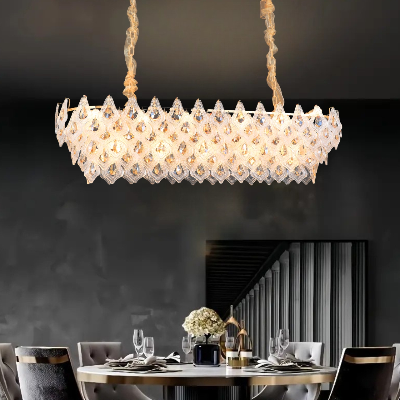 Double Height Crystal Chandeliers